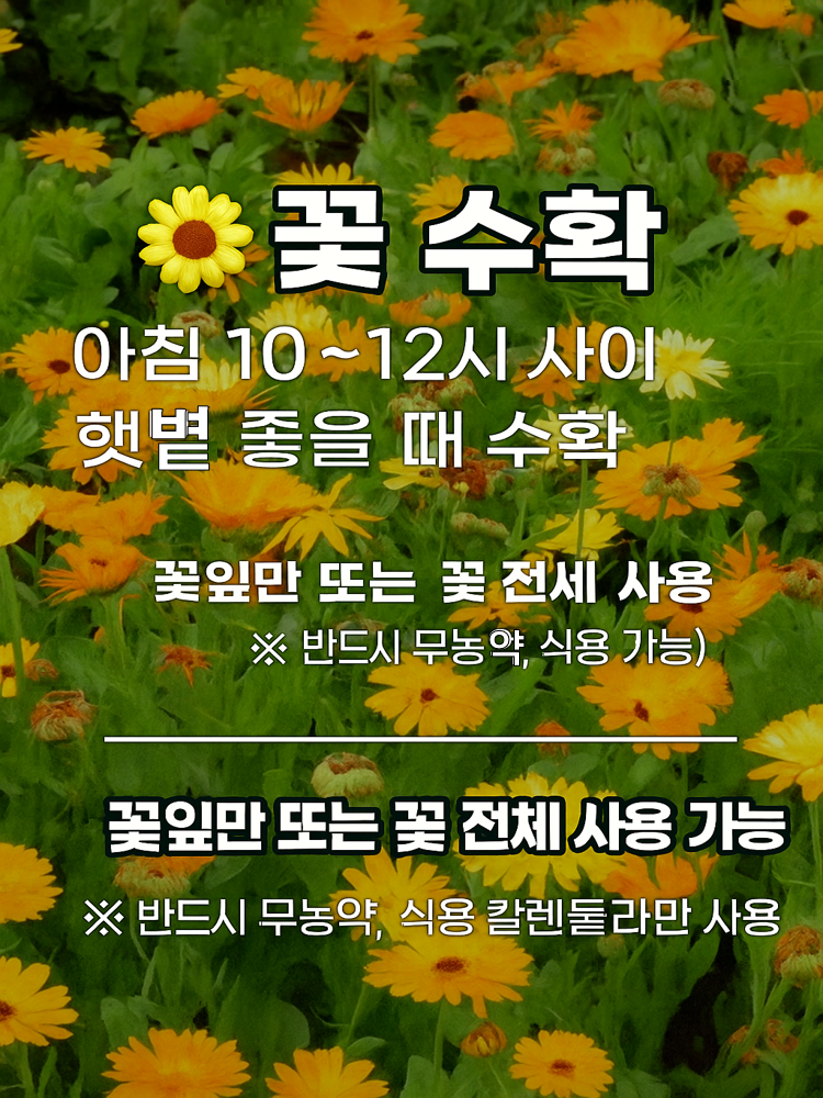 오늘은 메리골드 중에서도 **식용으로 안전한 '칼렌듈라(Calendula officinalis)'**를