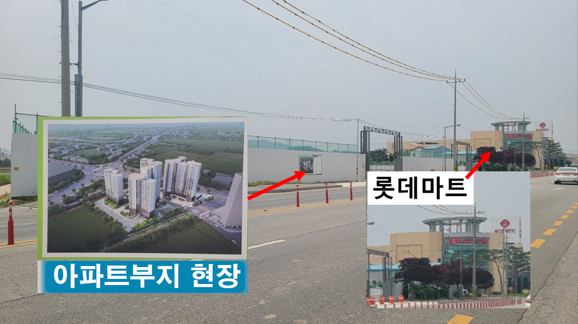 현장에 펜스에 현장사업개요가 있어 사진을 찍다가 오른쪽으로 고개를 돌려 롯데마트를 바로 봤다.
