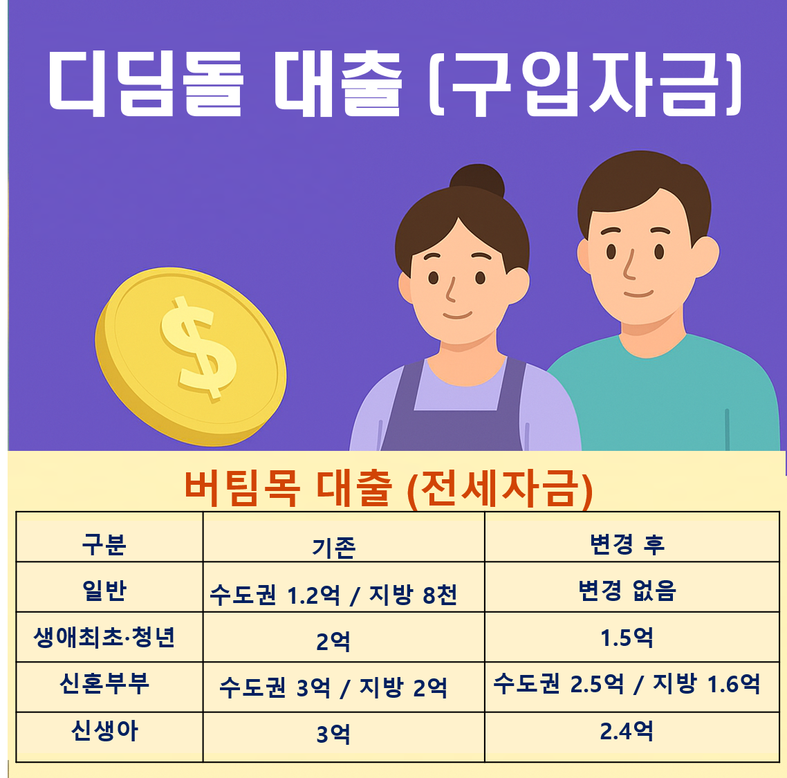 | 생애최초·청년 | 3억 원 | 2.4억 원 |